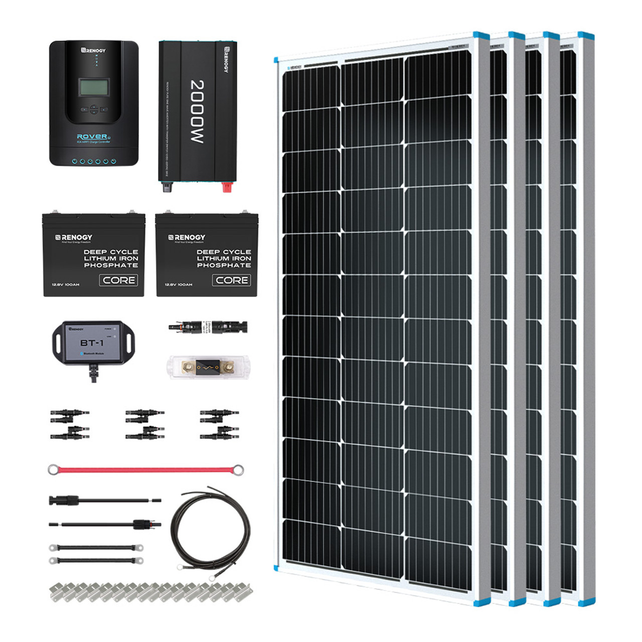 400W 12V 24V Solar Panel Kit with 100Ah Lithium Iron Battery